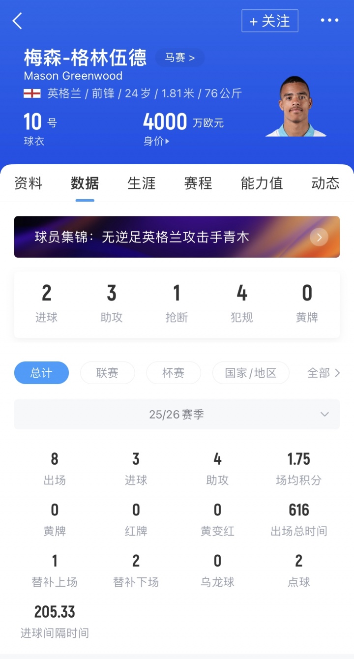 上赛季鸿沟,格林伍德身价已回升至4000万欧,名次队内第一。本赛季他在马赛不绝精良推崇,联赛与欧冠一共8场比赛收成3球4助。