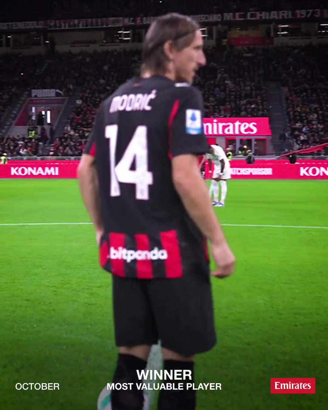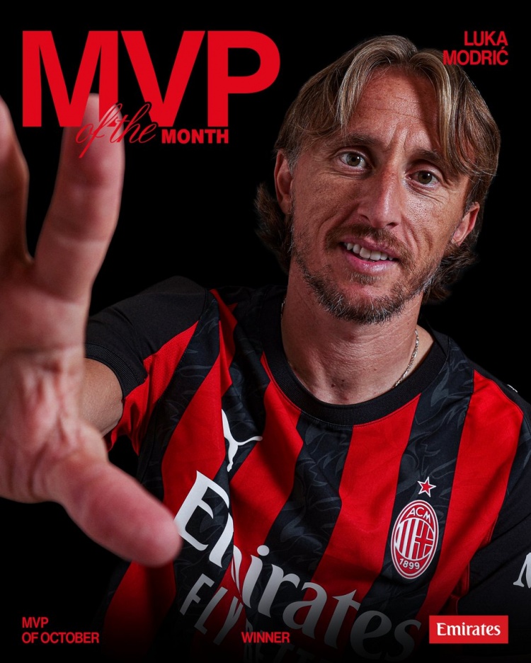 11月1日讯 米兰官方晓示,40岁莫德里奇当选队内10月最好球员。