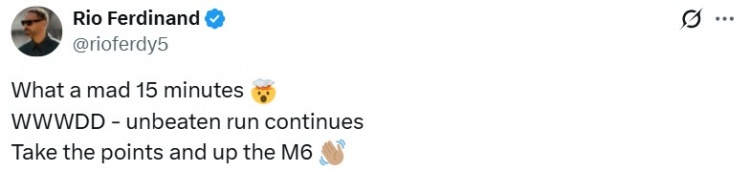 曼联名宿费迪南德在社媒发文驳斥说念:“率性的15分钟,3胜2平,曼联的不败接续。收下分数并争取接续至第6场。”