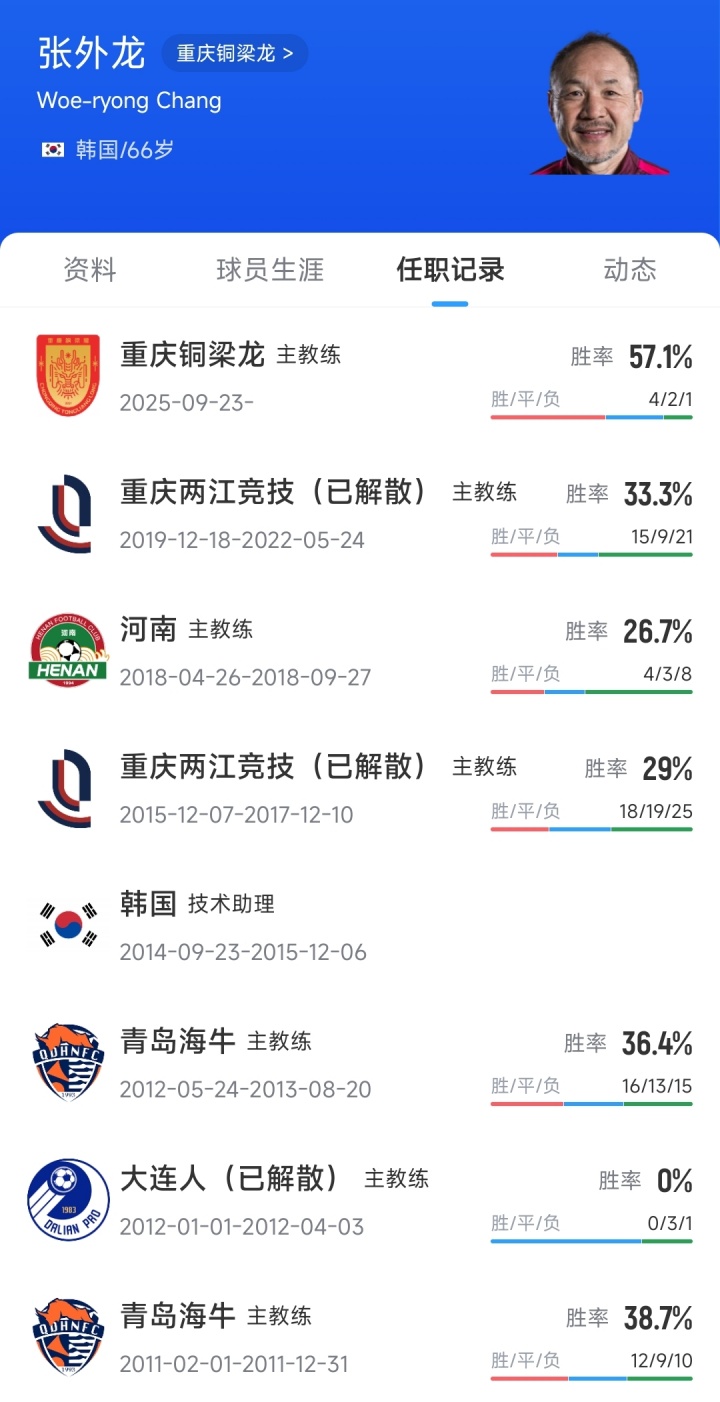 本年9月23日,张外龙出任中甲重庆铜梁龙主帅,带队7场比赛获得4胜2平1负,率队到手升入下赛季中超。