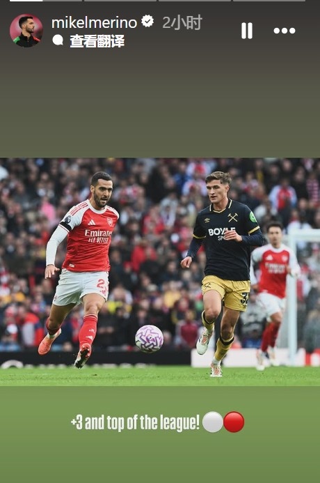 10月5日讯 在阿森纳2-0打败西汉姆联后,梅里诺更新了外交媒体。