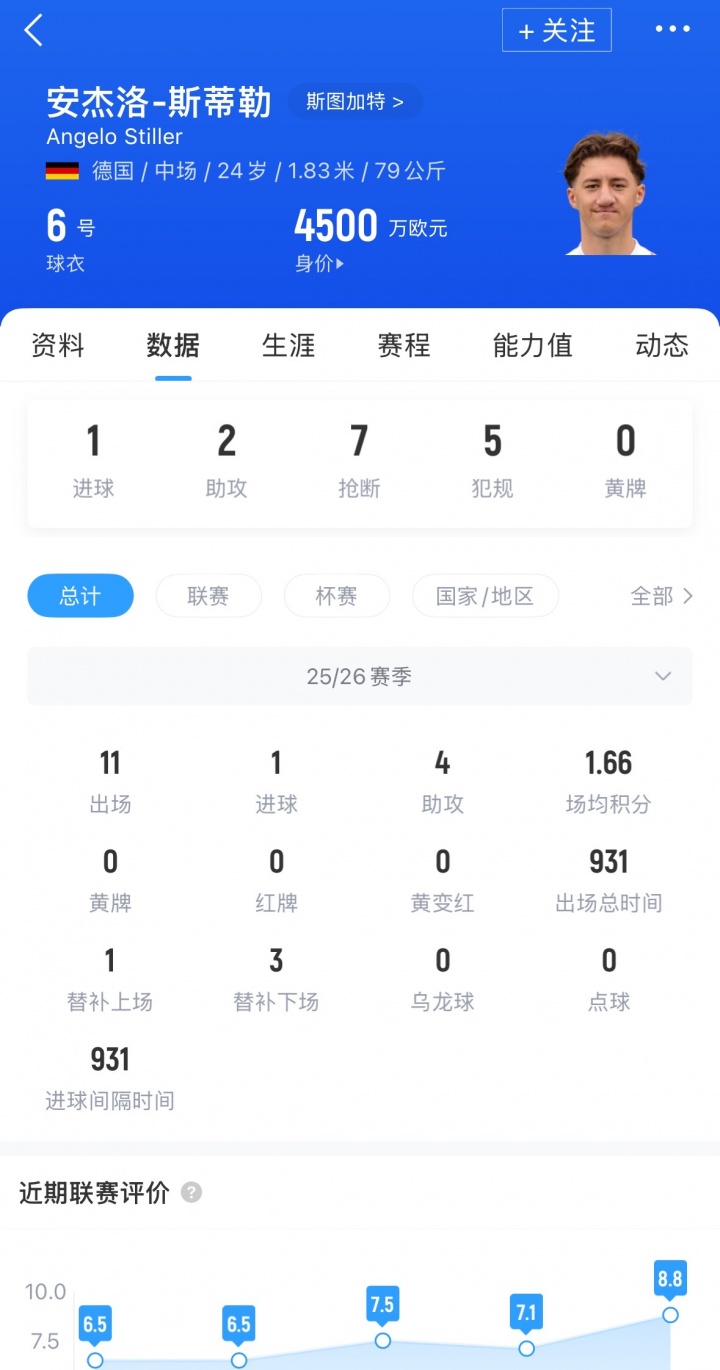 斯蒂勒现年24岁,司职中场,本赛季各赛事出场11次,孝顺1球4助,当今斯蒂勒德回身价为4500万欧元。