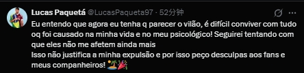 赛后,帕奎塔运动更新了个东谈主社媒,他先是用葡语发布动态,暗示:“我澄莹咫尺在外东谈主眼里我得饰演“坏东谈主”的扮装,跟这些年在我生活里、在我的脸色上形成的所有这个词创伤共处果然太难了!