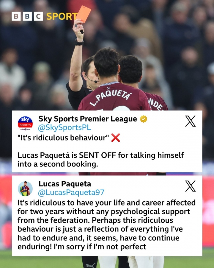 12月01日讯 英超第13轮,利物浦2-0治服西汉姆联,西汉姆中场帕奎塔比赛中因抗议判罚,被主裁连出两黄,红牌罚下。