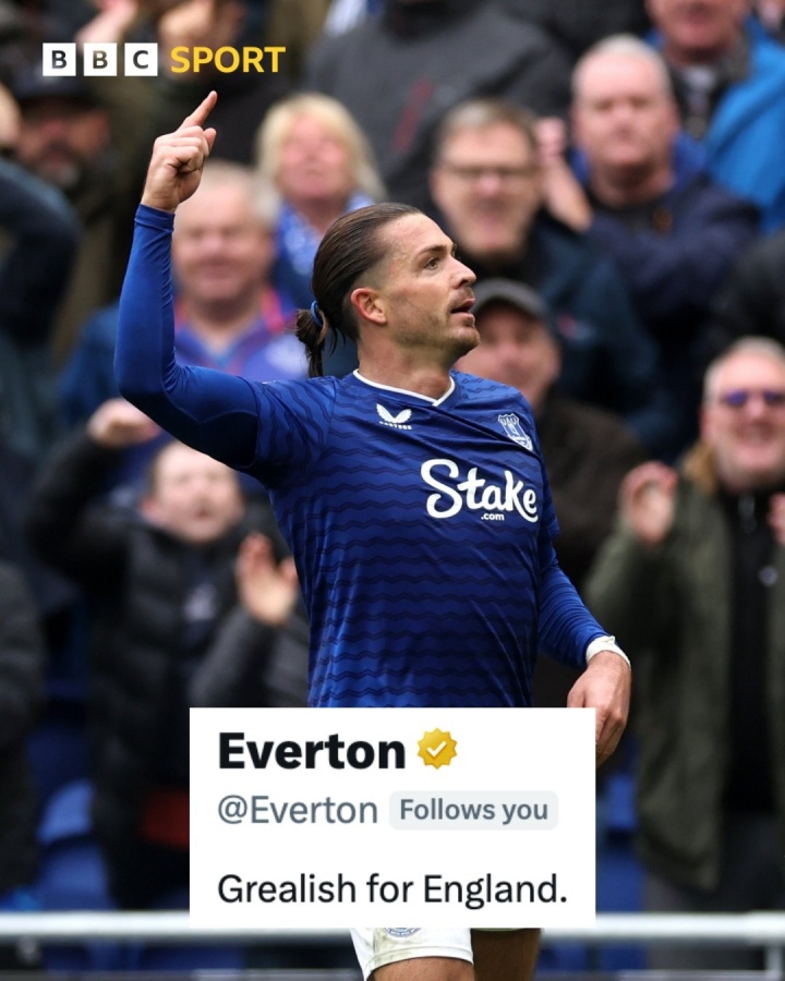 赛后,埃弗顿官方更新了俱乐部官方社媒的简介,唯有粗浅三个单词,意为“格拉利什代表英格兰队”。显着是对格拉利什近期落第英格兰队大名单的恢复。