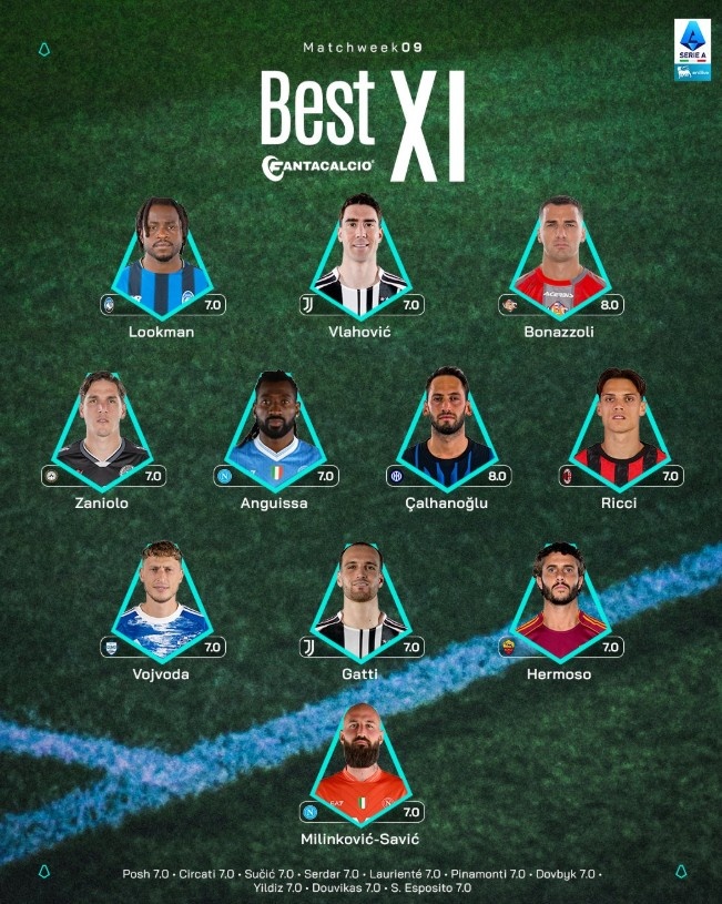 先锋:卢克曼(亚特兰大)、弗拉霍维奇(尤文)、博纳佐利(克雷莫内塞)