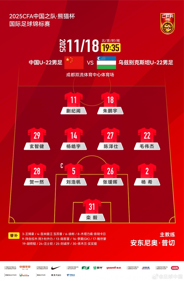 2025CFA中国之队·熊猫杯外洋足球锦标赛,中国队VS乌兹别克斯坦队首发名单出炉!