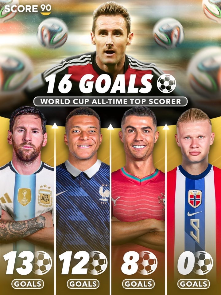 当今全国杯历史弓手王是克洛泽,他在随德国队进入的4届全国杯中打进16球,杰出了15球的罗纳尔多。现役球员中,也曾打进13球的梅西与12球的姆巴佩,来岁全国杯均有契机杰出克洛泽,而8球的凯恩、C罗、内马尔难度则比拟大。