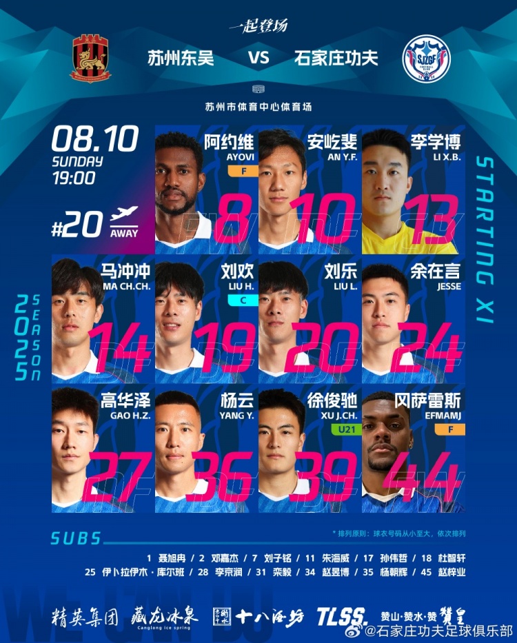 你的位置:意甲直播 > 意甲 > 石家庄功夫客场挑战苏州东吴首发声威!