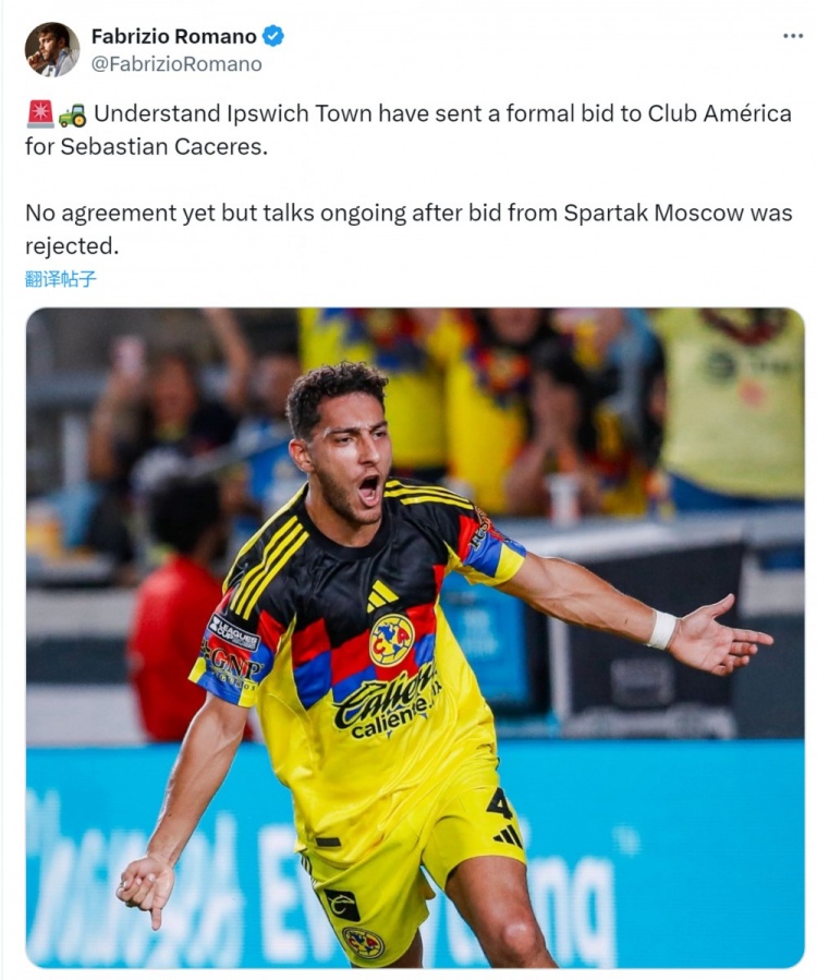 罗马诺显现,伊普斯维奇对效劳于墨西哥好意思洲的乌拉圭中卫卡塞雷斯感敬爱敬爱,照旧向墨西哥好意思洲提交弘扬报价。