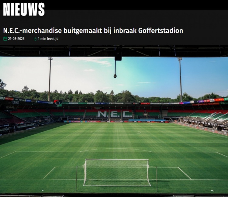 奈梅亨官方暗示:“上周,高费尔特球场发生入室盗窃案,这次事件中,价值至少15000欧元的俱乐部邻近商品被盗,其中包括原定于8月26日周二起向球迷发售的多数球衣。”