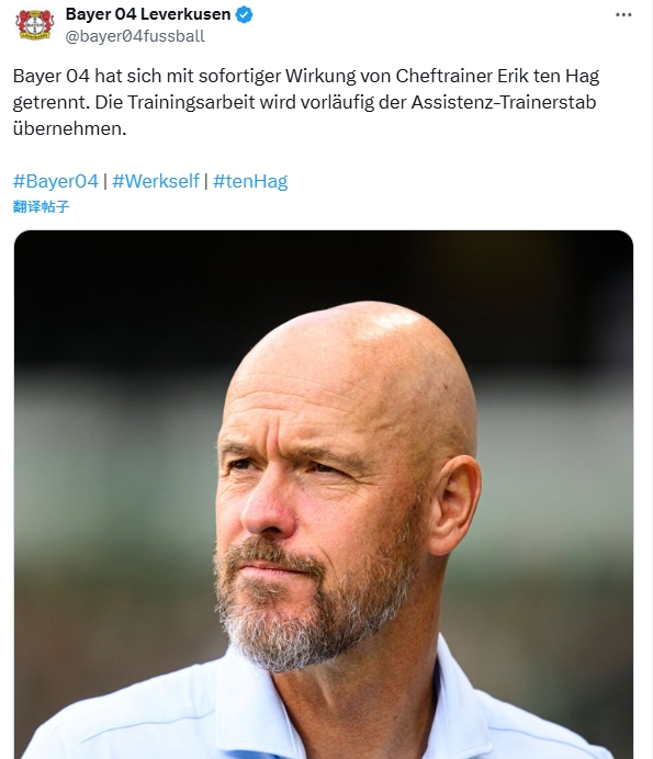 勒沃库森官方:即日起破除埃里克-滕哈赫主西宾职务,磨练职责暂由助理西宾团队罗致。