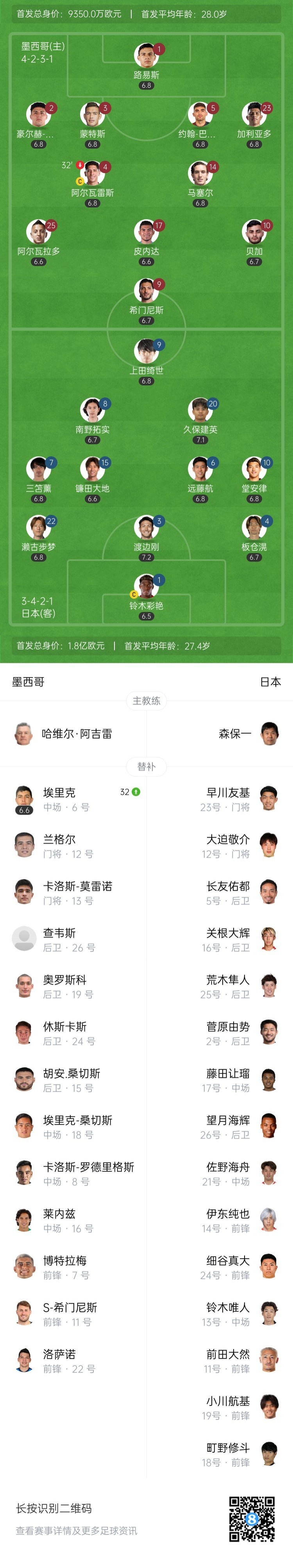 第34分钟,墨西哥左路斜长传振荡右侧,三笘薰高速回防,头球回顶给门将↓