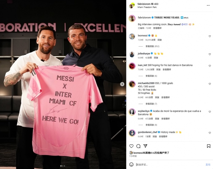 名记罗马诺和433将采访梅西,罗马诺晒出与梅西合影:重磅采访行将上线。