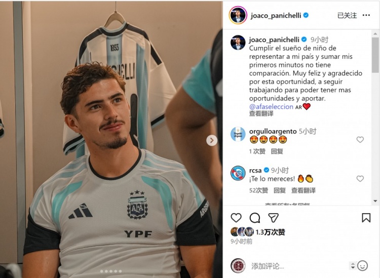 帕尼切利写说念:“达成儿时梦思,穿上国度队球衣并迎来首秀,这种嗅觉无与伦比!”