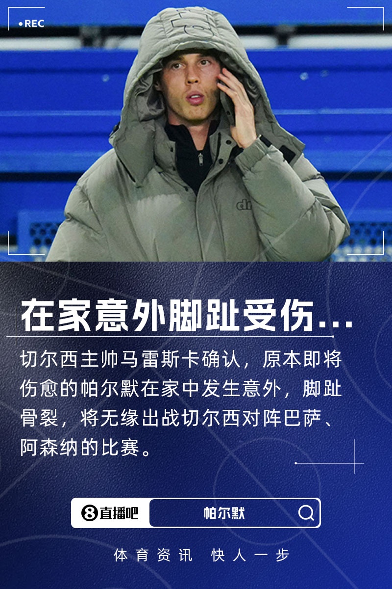 帕尔默最早在8月中旬出现伤情,9月14日完成复出,9月21日对阵曼联的比赛后腹股沟伤情加剧,原来行将复出。