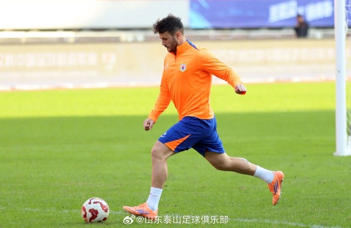 11月21日下昼,山东泰山队在武汉体育中心领略场进行赛前踩场考试,备战未来与武汉三镇队的中超收官之战。