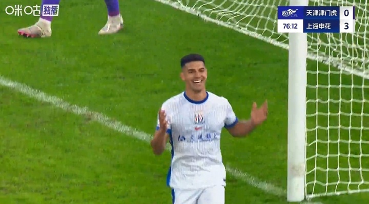 比赛第77分钟,路易斯单刀破门,但边裁举旗暗意越位,VAR查验后证实进球有用,申花3-0津门虎。