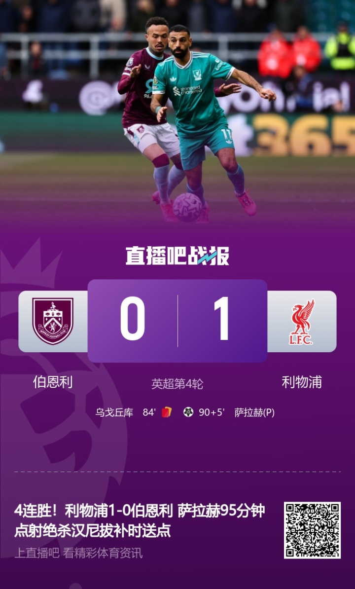 09月14日讯 英超第4轮,伯恩利补时临了一分钟遭到点球绝杀,主场0-1负于利物浦,而这一经是伯恩利开通第二场比赛被绝杀。